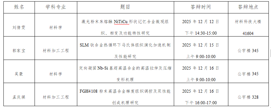 为深入推进学术型博士研究生培养机制改革,完善博士生考核机制,加强博士生培养过程管理,全面提高博士生培养质量,按照《西北工业大学学术型博士研究生培养过程管理实施细则》要求,将于2025年12月12日组织博士研究生开题公开答辩报告会,现将答辩安排公告如下: